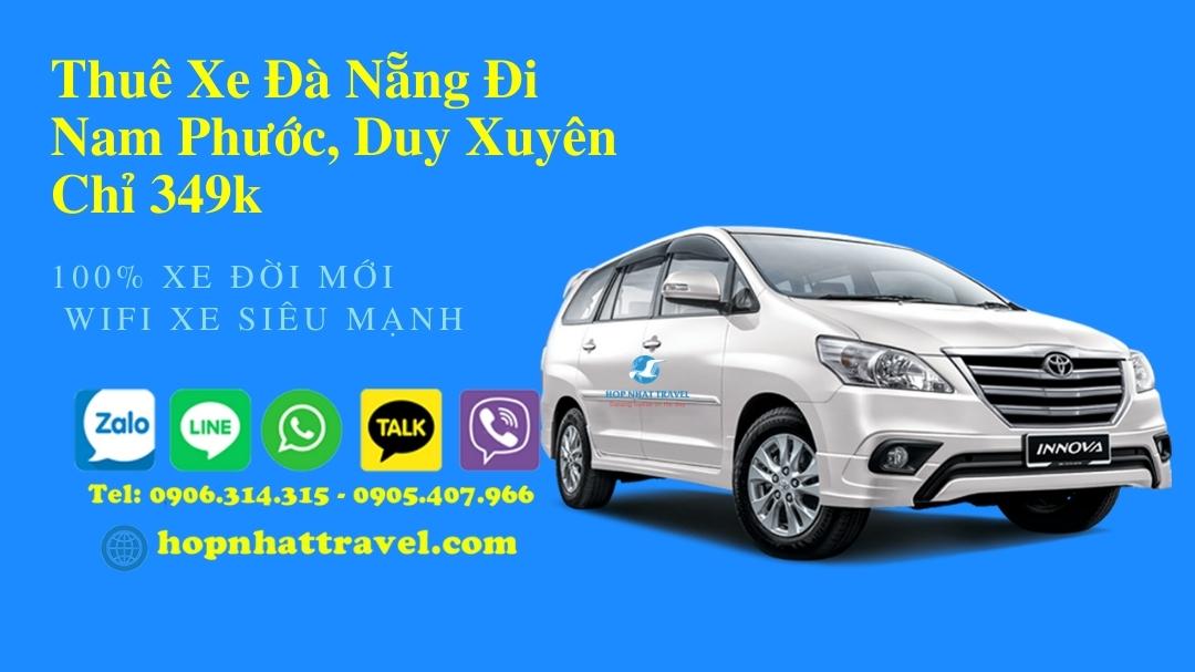 Hợp Nhất Travel cung cấp dịch vụ thuê xe Đà Nẵng đi Nam Phước, Duy Xuyên đưa đón tận nơi, có tài xế đi kèm hoặc thuê xe tự lái. Quý khách sẽ được tư vấn hoặc tham khảo trước giá cả như xe grab, xe taxi nhưng giá thành rẻ hơn 40% trên cùng hành trình với chất lượng 5 sao.